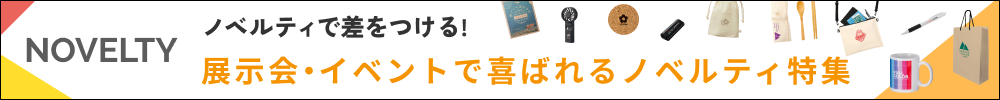 イベントや展示会では、配布物やノベルティをもらうことが多いため、その場で荷物をひとまとめにできる「トートバック」や「エコバック」などの袋関連商品はお客様に喜ばれます。