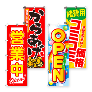 レスタスでは店舗への集客アイテムとして活躍するのぼり旗のお取り扱いもございます。