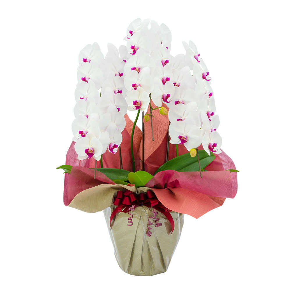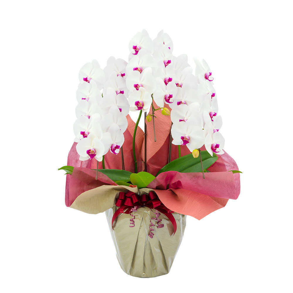 | 胡蝶蘭大輪 白3本立ち 30-35輪程度 | 胡蝶蘭大輪 白5本立ち 55-60輪程度 | 胡蝶蘭大輪 ピンク3本立ち 25-30輪程度 | 胡蝶蘭大輪 ピンク3本立ち 35-40輪程度 | 胡蝶蘭大輪 赤リップ3本立ち 25-30輪程度 | 胡蝶蘭大輪 赤リップ3本立ち 30-35輪程度 |